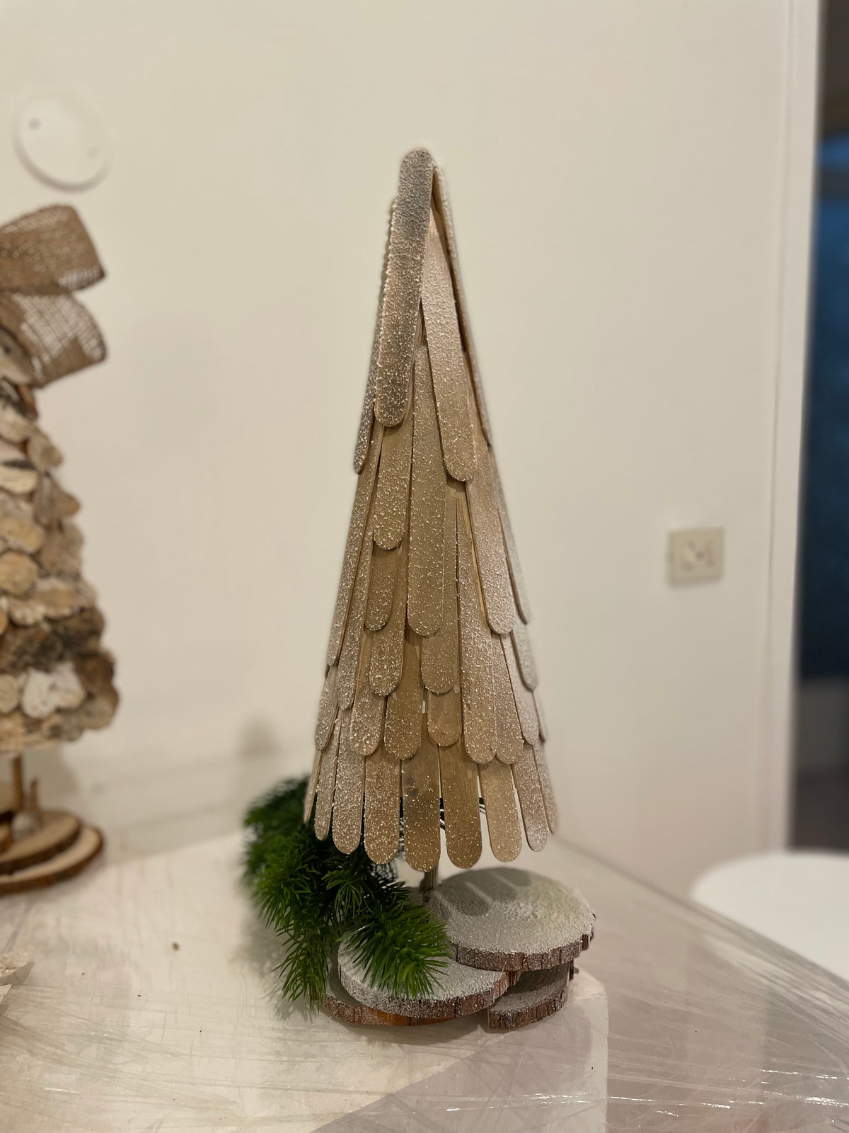 Aggiungi un tocco di originalità al tuo Natale con la nostra decorazione albero con palette e base in legno. Perfetta per creare un'atmosfera unica e divertente durante le vacanze. Non solo è un'adorabile aggiunta, ma è anche una soluzione di design sostenibile!