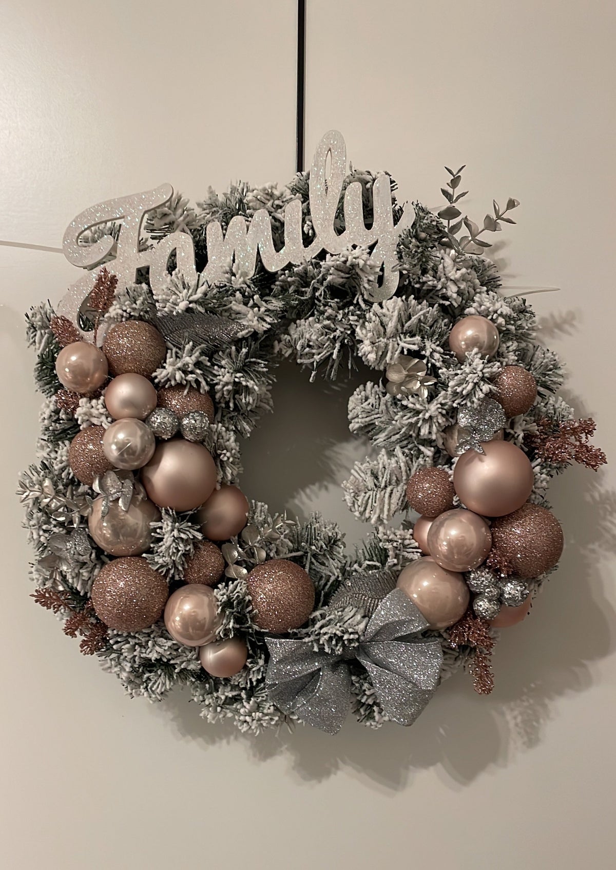 Questo elegante fuoriporta natalizio in abete innevato è il modo perfetto per accogliere i tuoi ospiti durante le festività. Realizzato con rami di abete, palline colorate e foglie di agrifoglio, dona un'atmosfera di calda accoglienza e raffinata eleganza. Aggiungi un tocco di classe alla tua casa con questo pezzo unico del periodo natalizio.