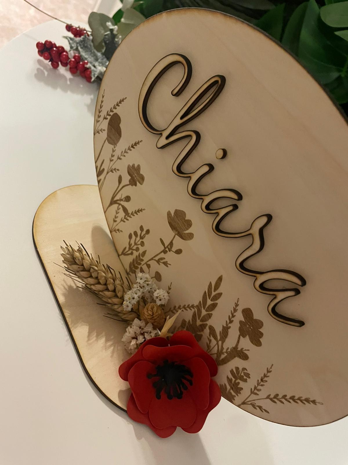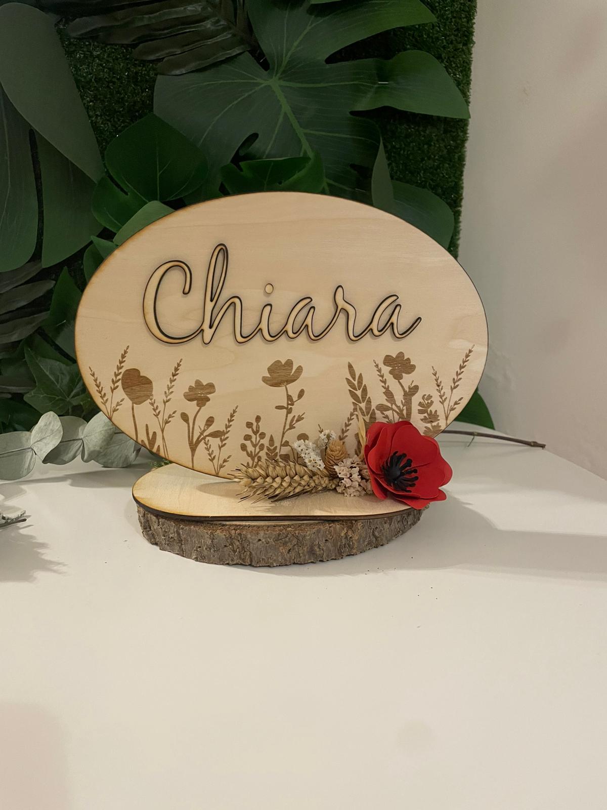 Targa in legno con nome o scritta. Dimensioni 15x25.