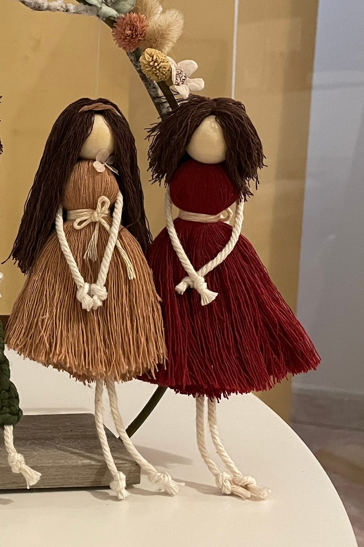 Porta un tocco di originalità alla tua casa con questo gruppo di bamboline in macramè! Realizzate a mano con cura e dettaglio, queste adorabili bamboline aggiungeranno un tocco di giocosità e fascino a qualsiasi ambiente. Regala un sorriso a te stesso e ai tuoi ospiti con questo gruppo unico di decorazioni!