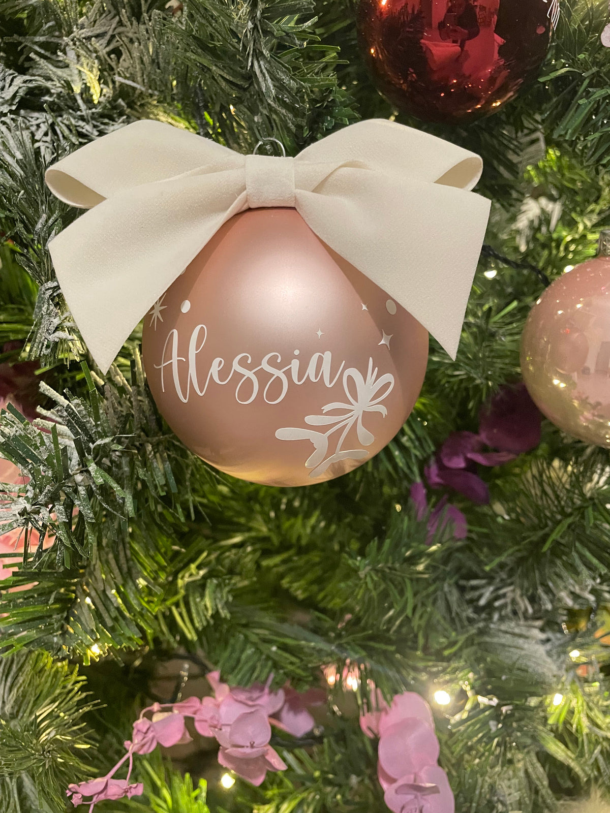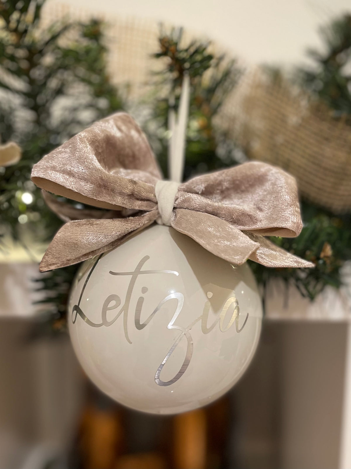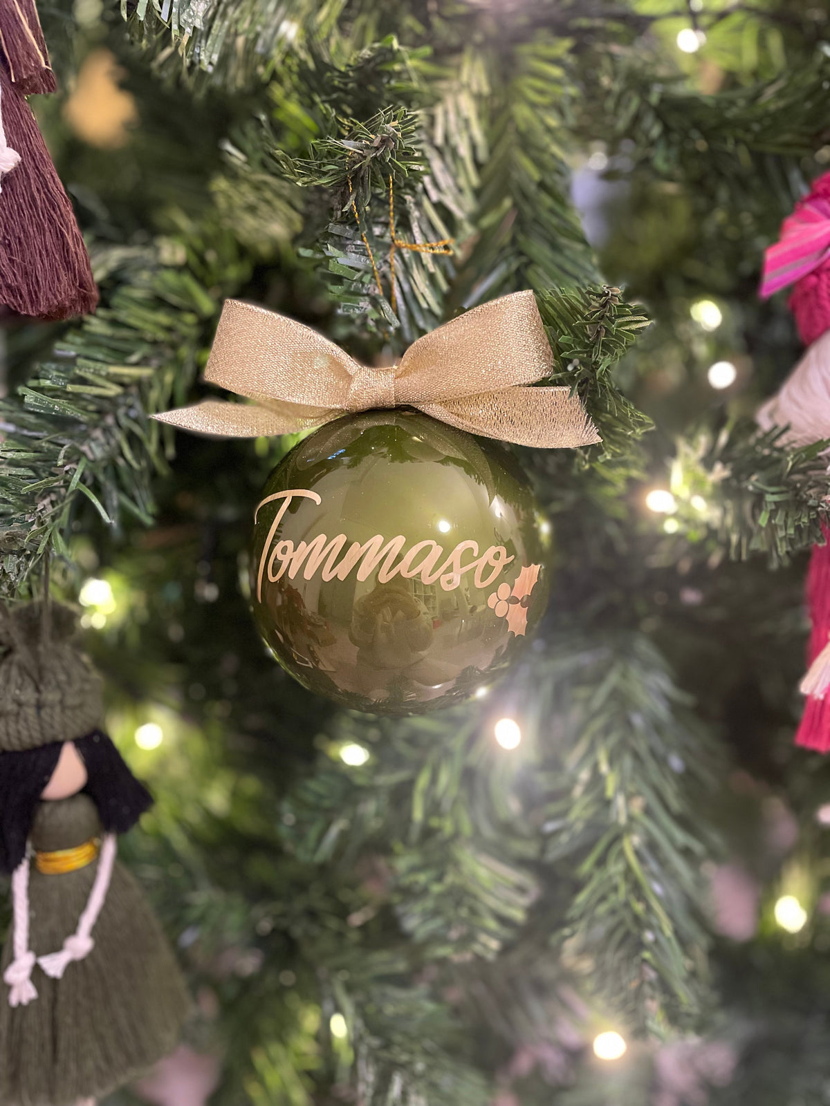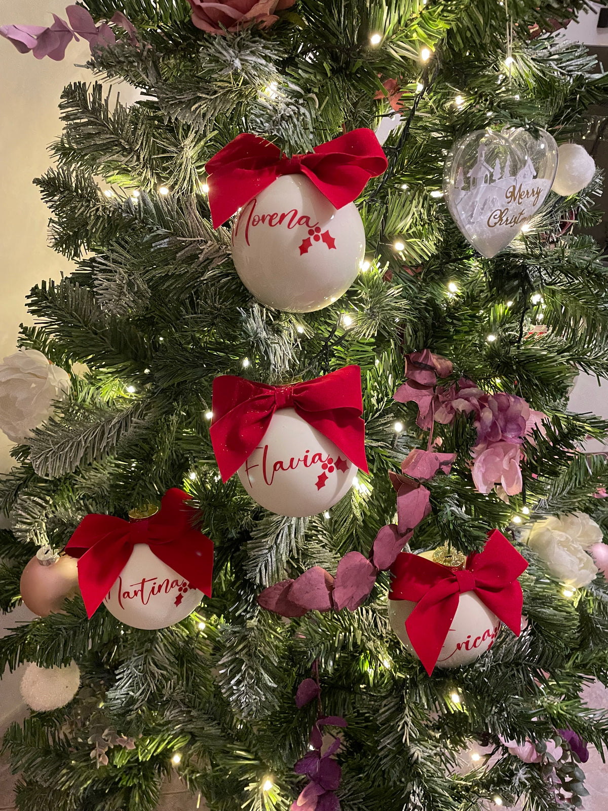 Porta l'eleganza natalizia nella tua casa con la nostra pallina in vetro colorata da 10 cm. Personalizzabile con il tuo nome grazie a una scritta delicata e un nastro raffinato. Crea un'atmosfera esclusiva e aggiungi un tocco di raffinatezza alla tua decorazione natalizia.
