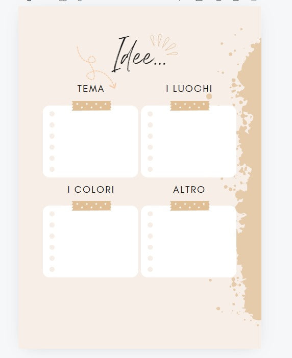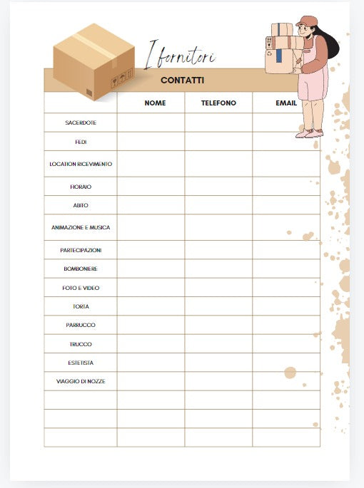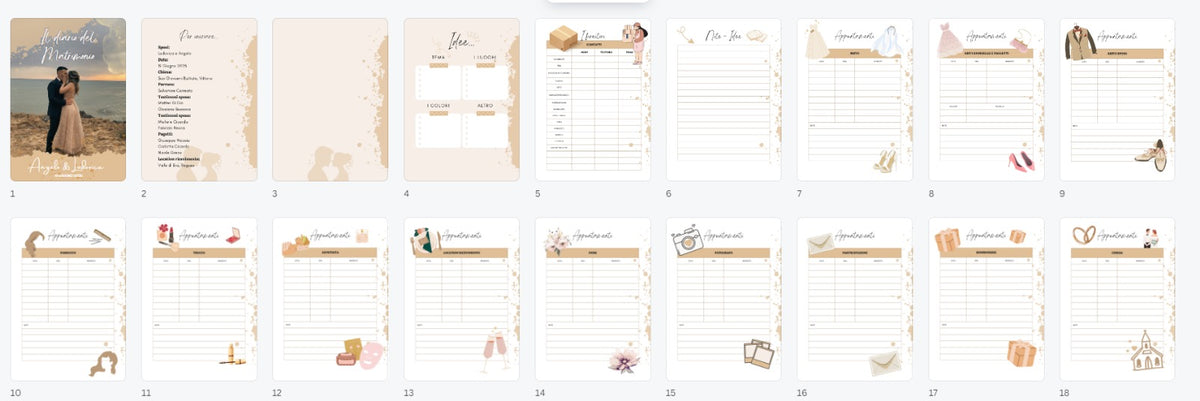 Esplora ogni dettaglio del tuo grande giorno con il Diario del matrimonio per le future spose . Organizza i preparativi, annota le idee e le ispirazioni, e condividi il diario con il tuo partner per creare ricordi preziosi. Un compagno essenziale per ogni sposa in attesa del loro matrimonio!