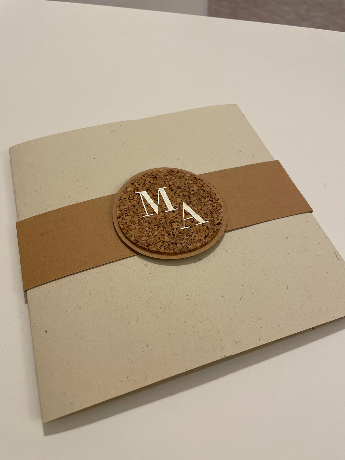 Introducete il vostro grande giorno con l'invito di nozze "Sughero". Realizzato con elegante carta di alta qualità e dettagli in sughero, questo invito esclusivo è perfetto per le coppie che cercano un matrimonio unico e di classe. Conquisterete i vostri invitati con il suo stile sofisticato e distintivo.