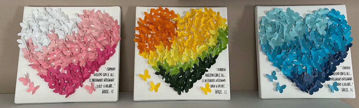 Porta la bellezza nella tua casa con il Quadretto cuore farfalle in carta, realizzato a mano. Ogni pezzo è unico, perfetto come idea regalo per chi ama l'originalità. Un tocco di creatività e amore per rendere ogni giorno più colorato!