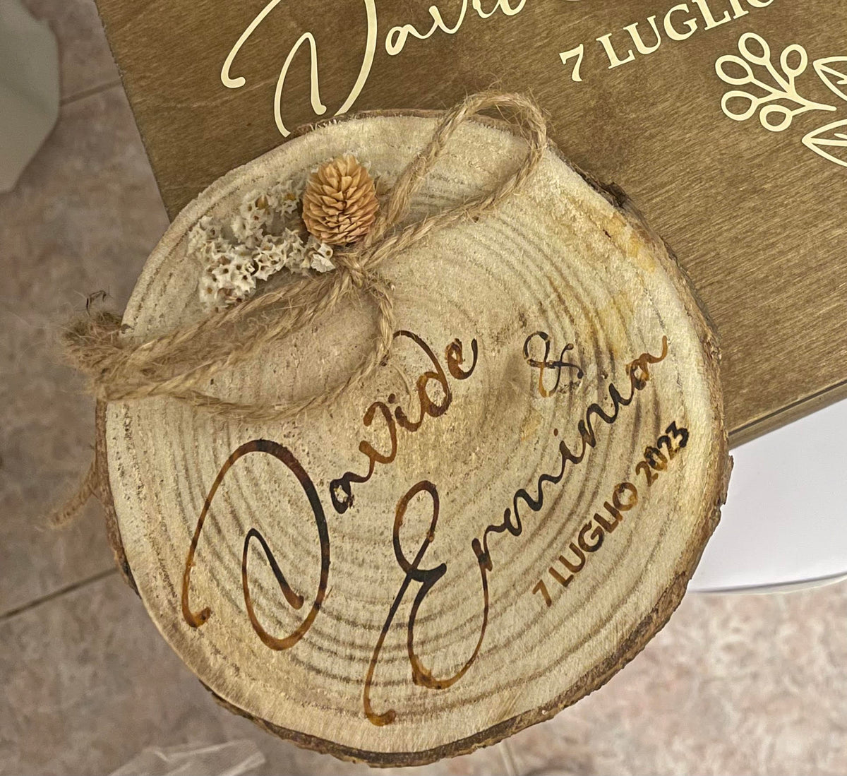 Portafedi in legno rustico con fiori artificiali. Un tocco di natura e un'aria rustica per il tuo giorno speciale. Realizzati a mano con materiali di alta qualità, questi portafedi aggiungono un tocco di eleganza al tuo matrimonio.