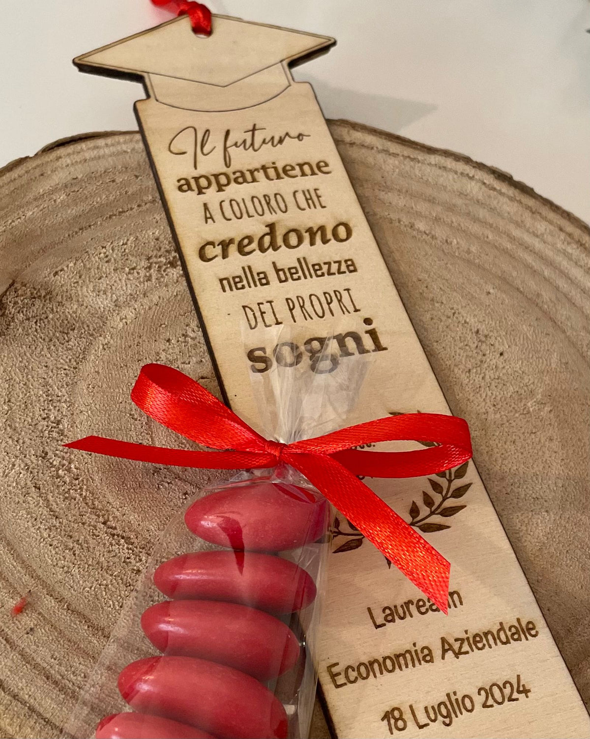 Segnalibro in legno con incisione laser. Dimensioni 7x20 cm
