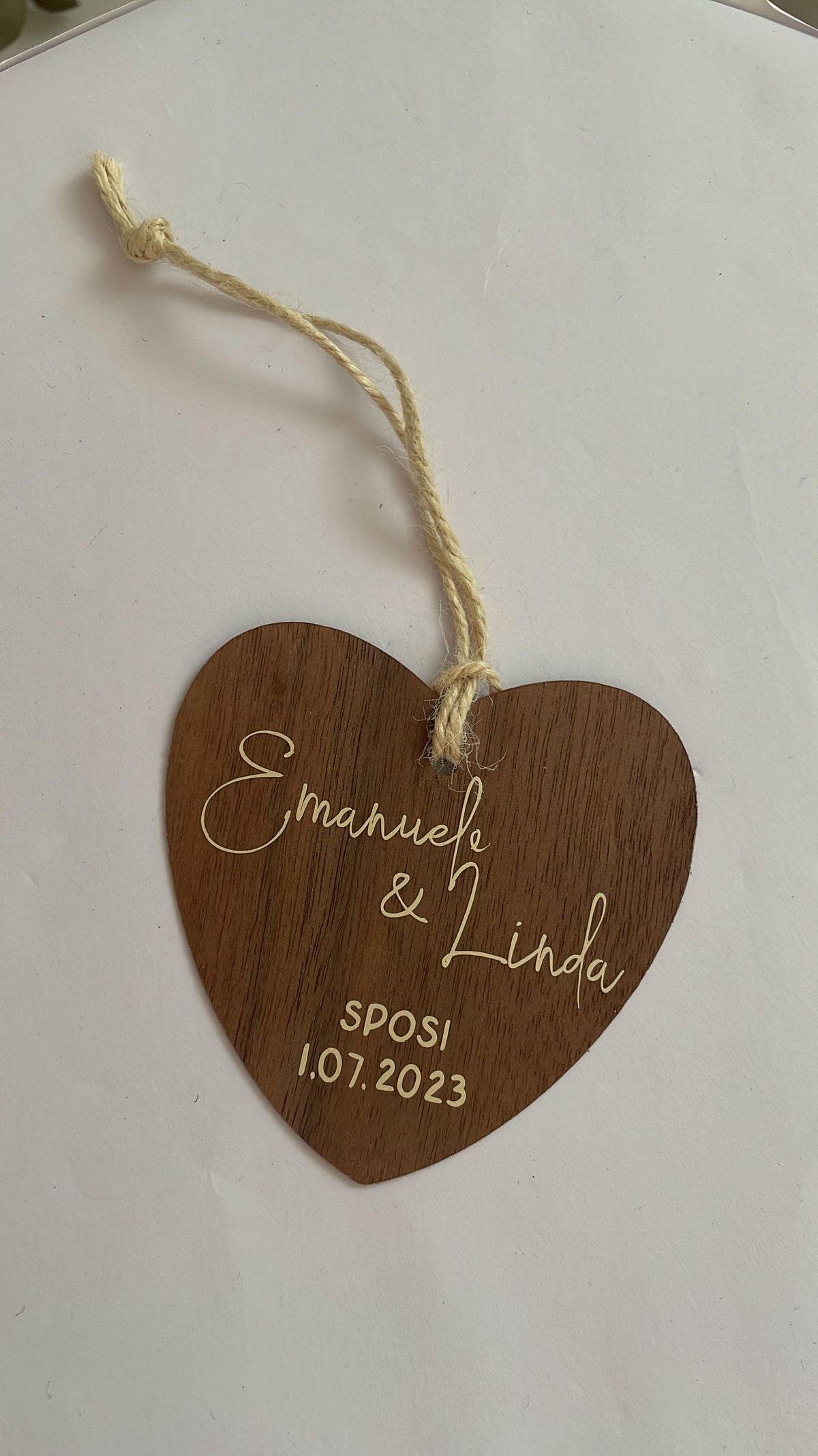 Targhetta sposi in legno personalizzabile. Con foro, dimensioni 15 x12 cm.