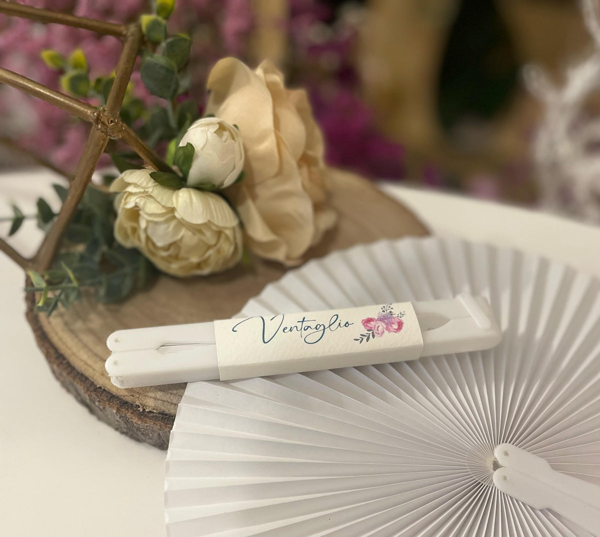 Rinfresca il tuo matrimonio estivo con il nostro ventaglio leggero! Perfetto per tenerti al fresco e aggiungere un tocco di eleganza alla tua cerimonia.